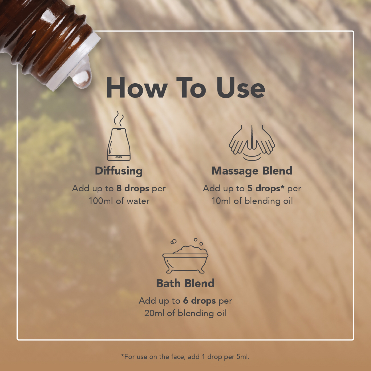 Com um aroma doce, quente e amadeirado, e notas frescas e balsâmicas, o óleo essencial de cedro (da Virgínia) proporciona uma sensação de calma e bem-estar onde quer que seja usado. Seu aroma reconfortante é conhecido por ajudar a aliviar a ansiedade e elevar o humor, podendo também ser usado para suavizar a pele seca, inflamada ou com tendência à acne.