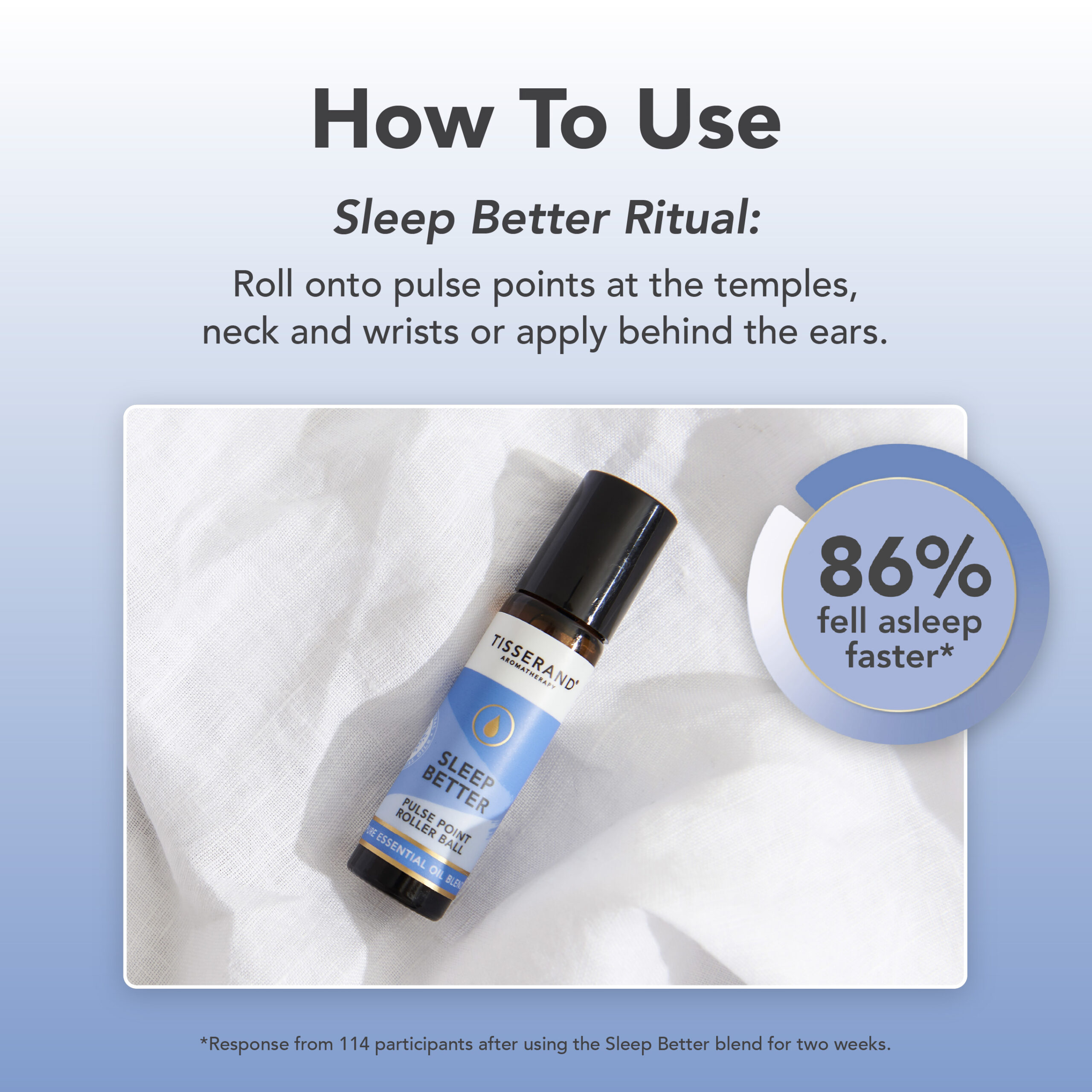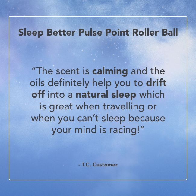 Relaxe e adormeça com o Roll-on Sleep Better Pulse Point. Esta mistura relaxante combina óleos essenciais 100% naturais e puros de lavanda calmante, sândalo reconfortante e jasmim tranquilizante para ajudar você a relaxar e se preparar para uma noite de sono tranquila.